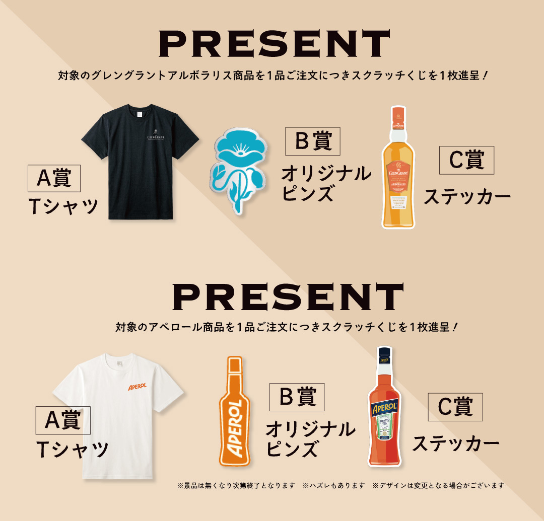 アペロール・グレングラントそれぞれの対象ドリンクを1杯ご注文につき、スクラッチクジを1枚進呈!!