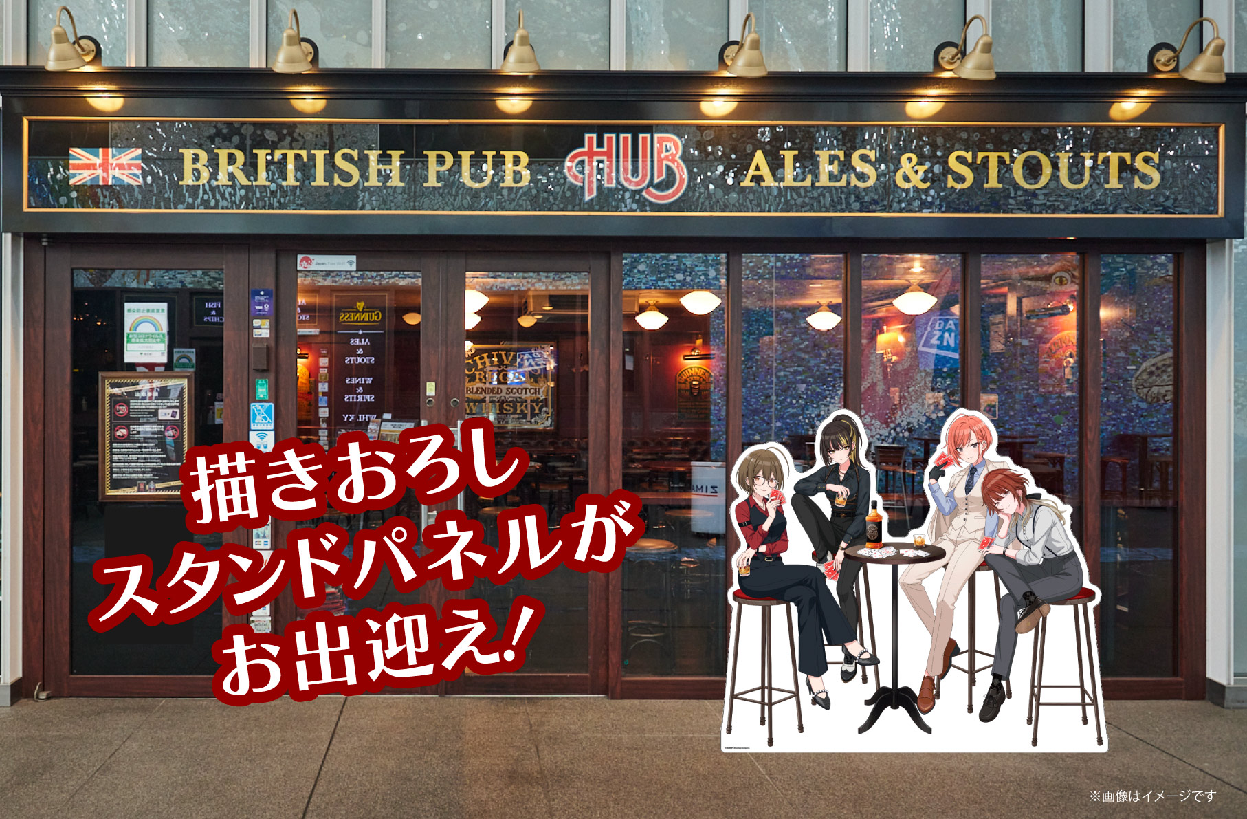 各店に描きおろしイラストを使用したスタンドパネルを設置!