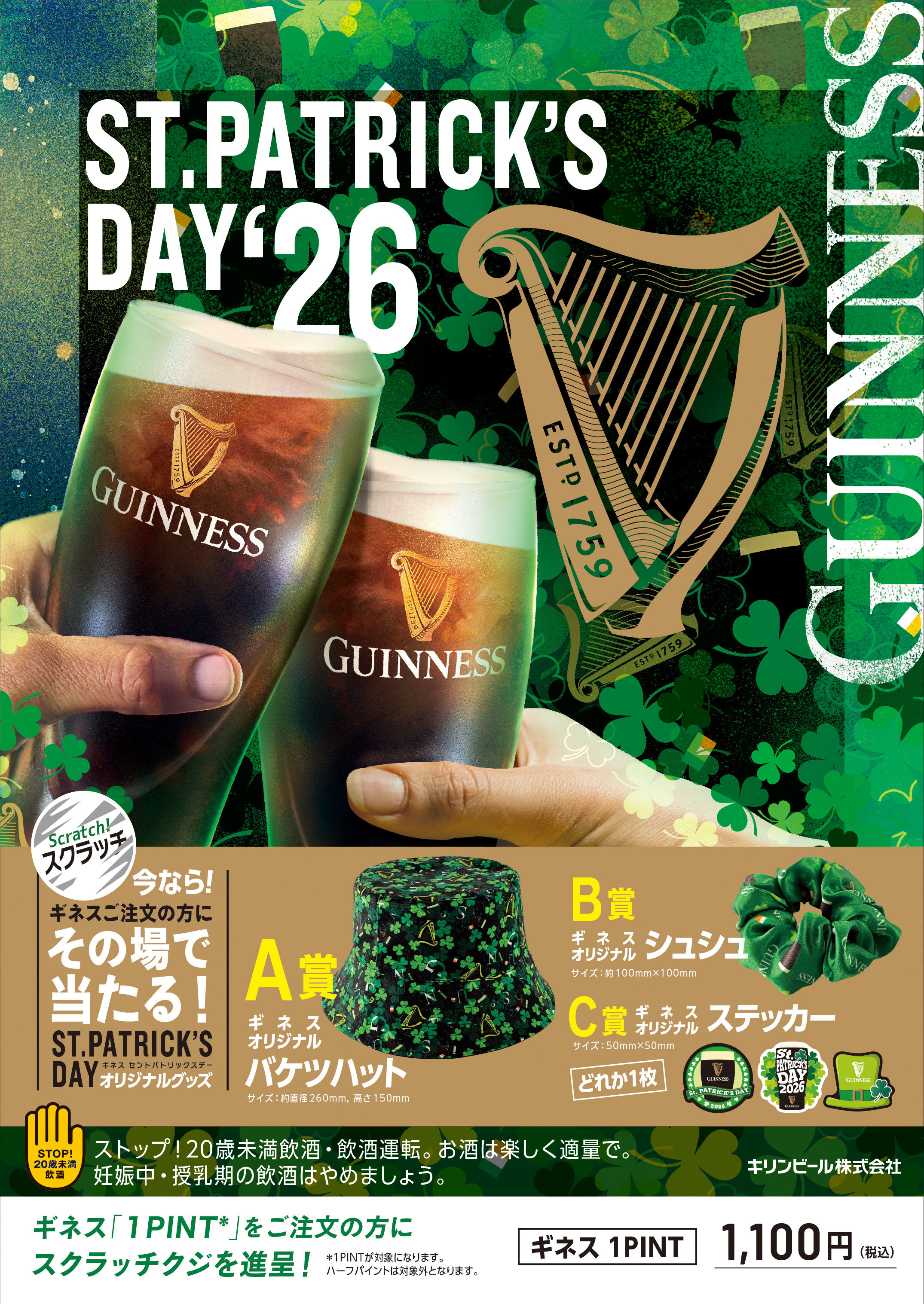 「GUINNESS」1PINT購入ごとオリジナルグッズがあたるスクラッチカードを1枚進呈!