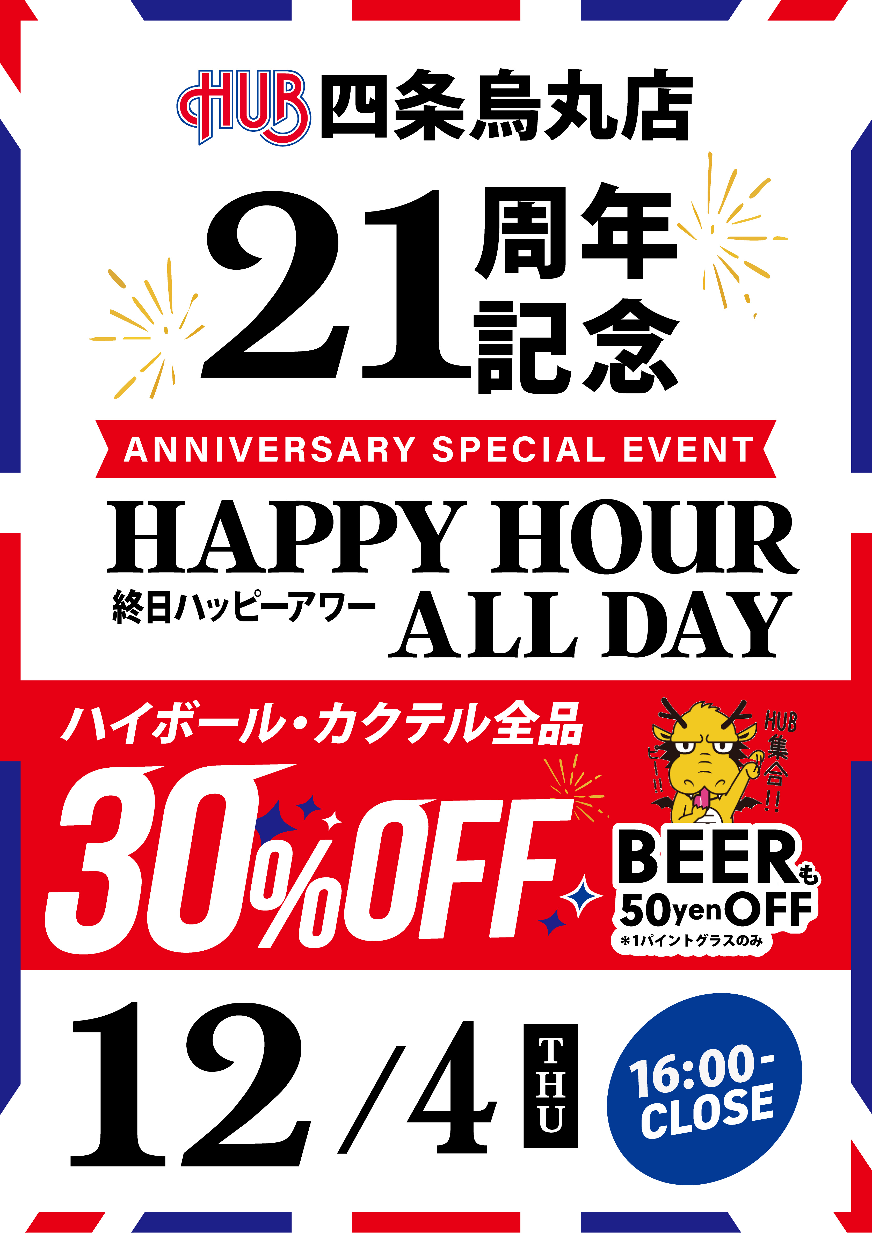 12/04(THU)HUB四条烏丸店21周年特別企画