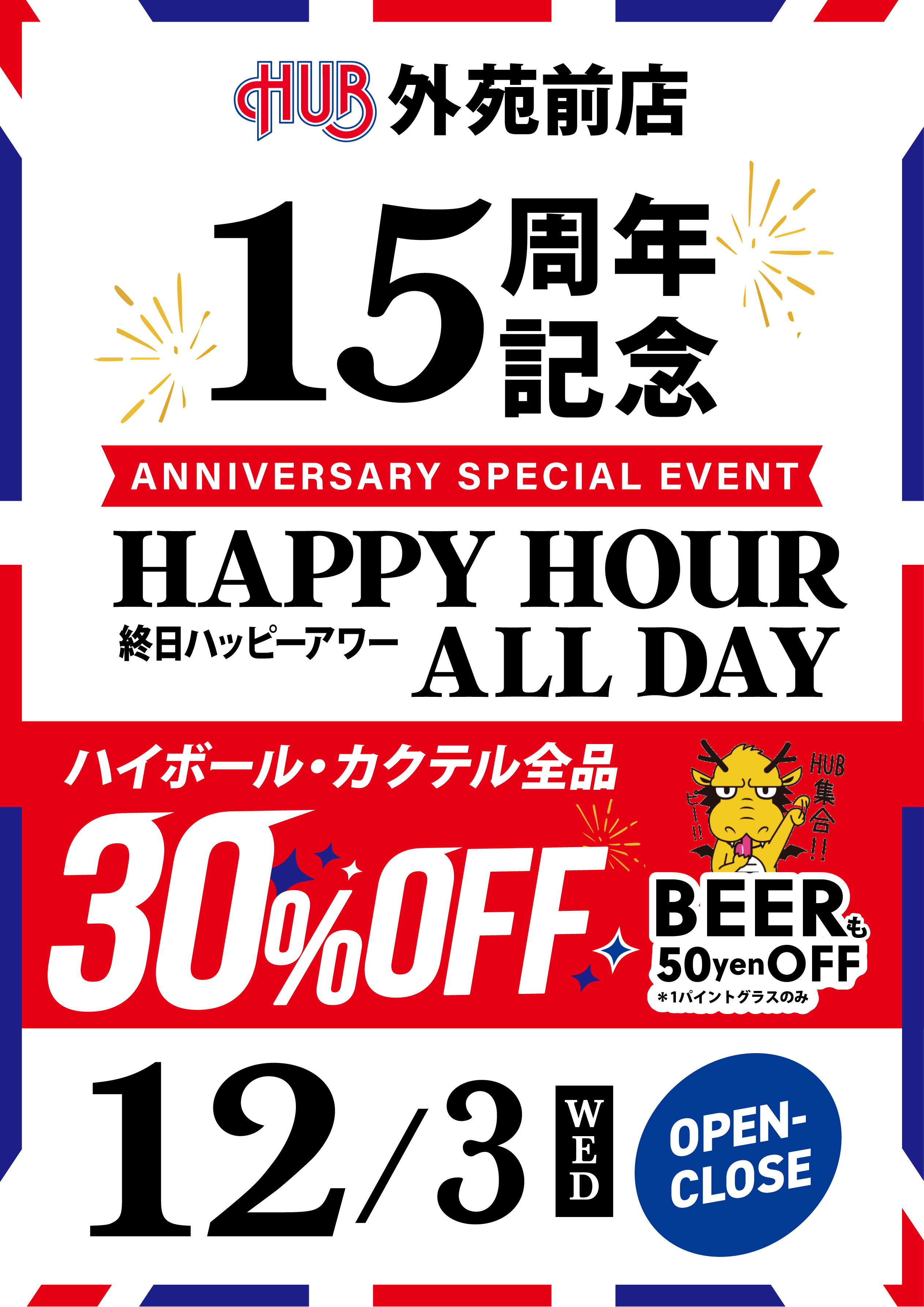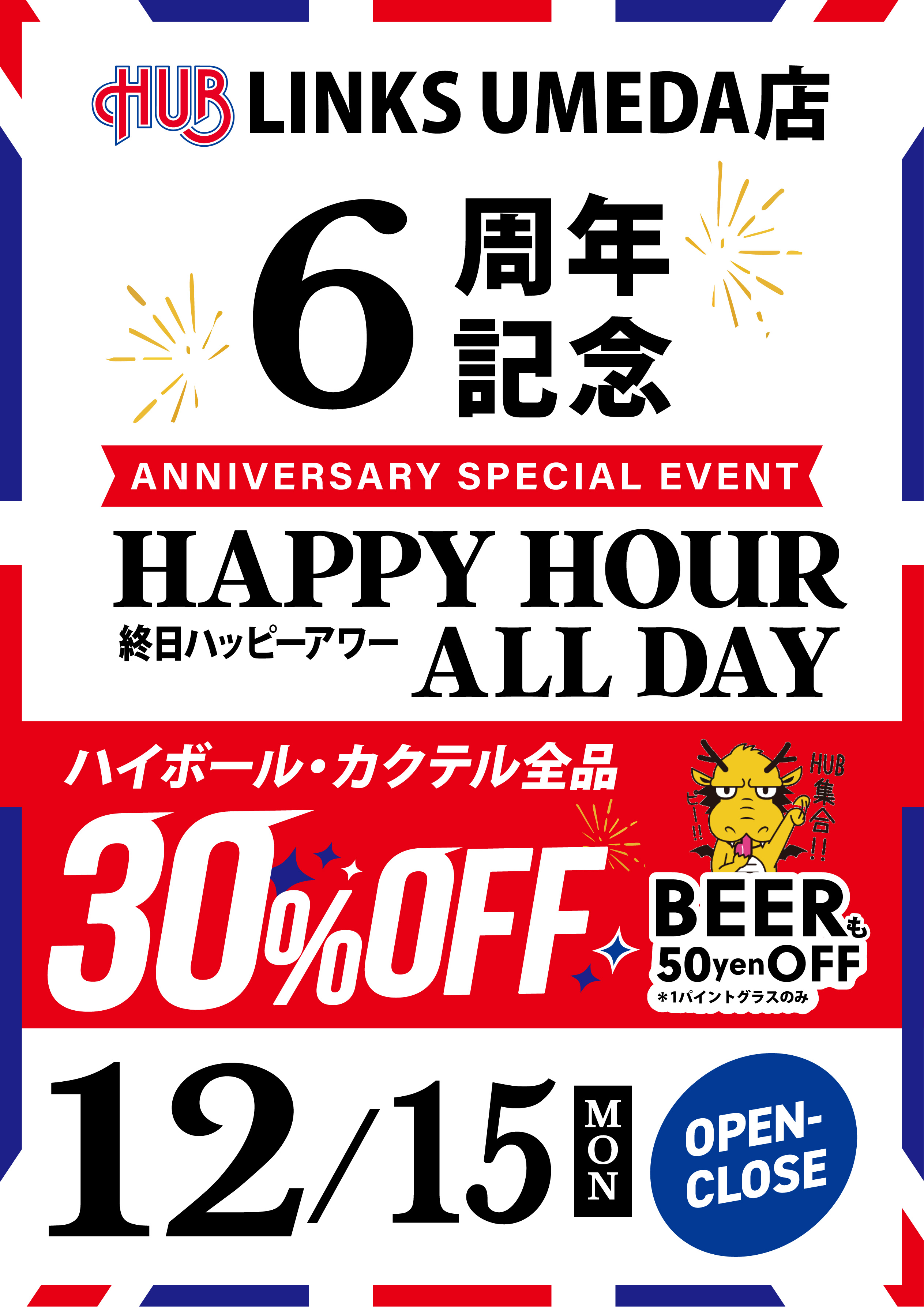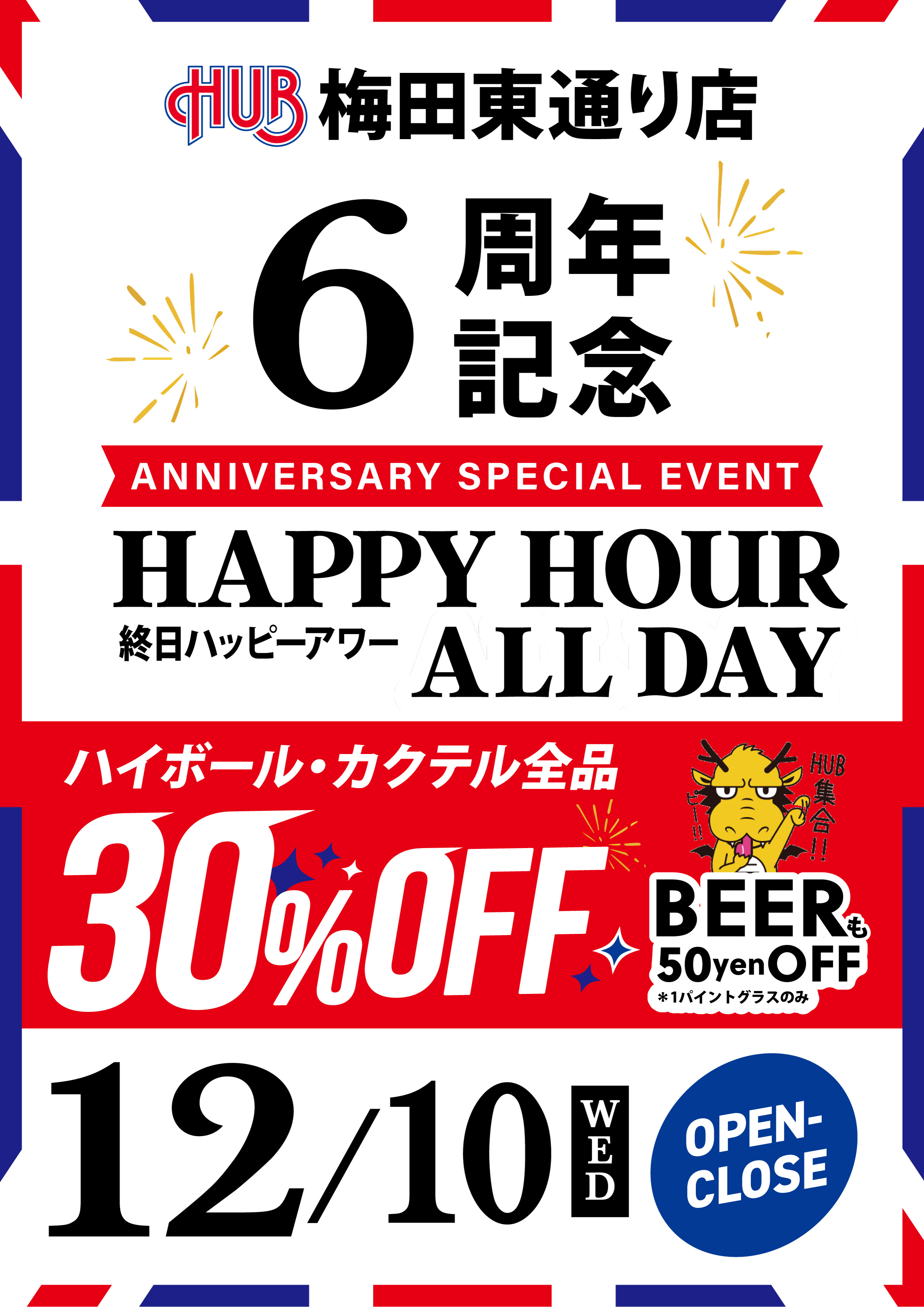 12/10(WED)HUB梅田東通り店6周年特別企画