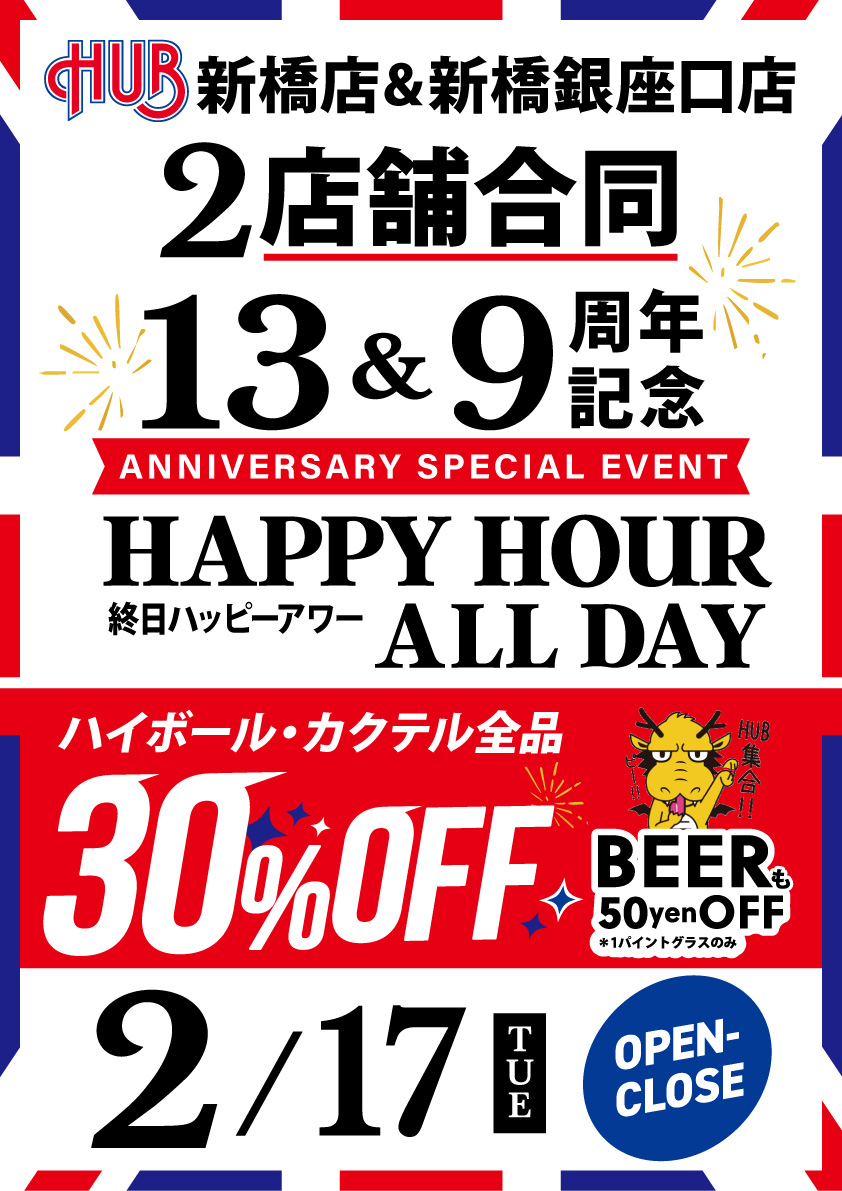 02/17(TUE)HUB新橋店13周年&HUB新橋銀座口店9周年特別企画