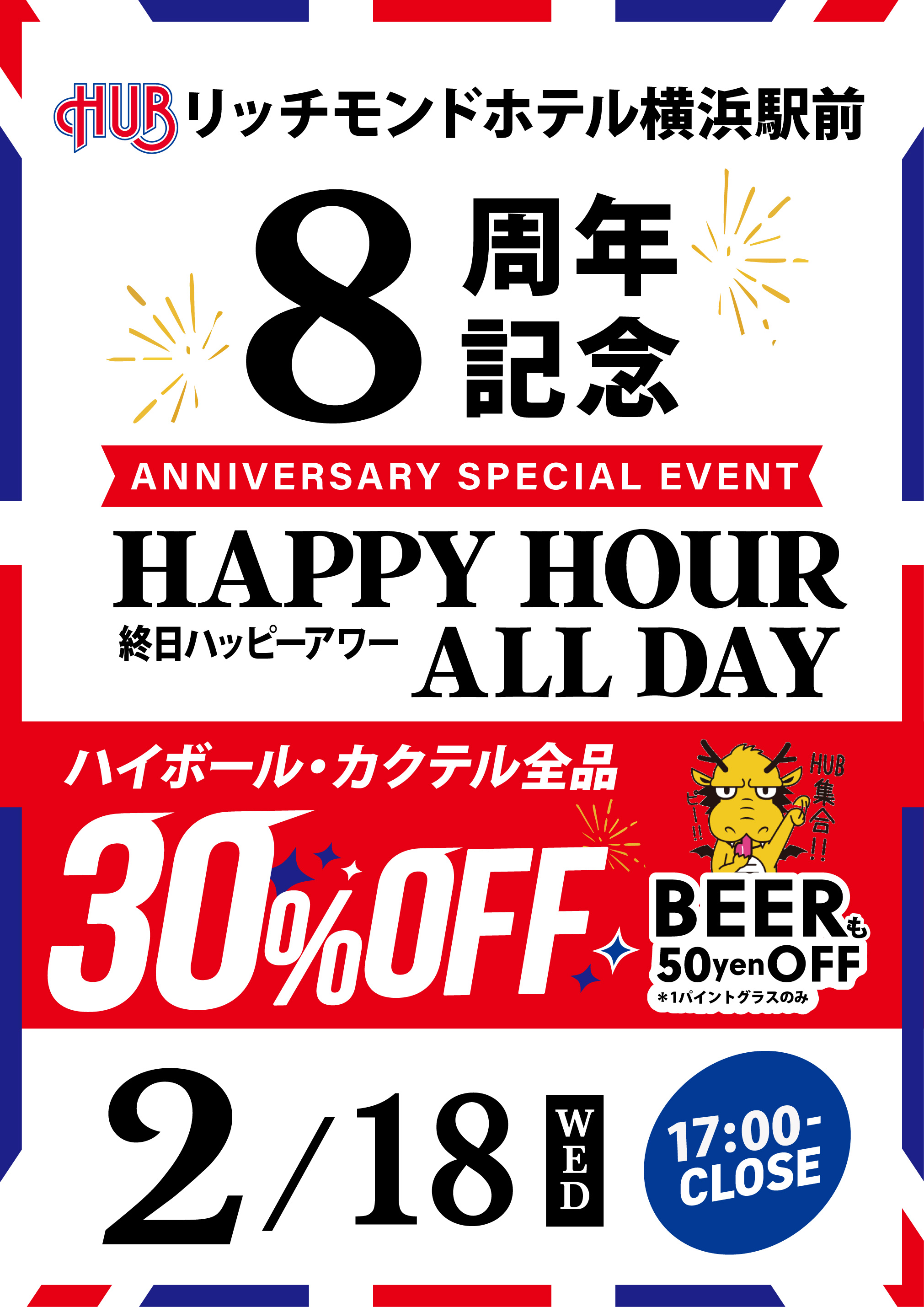 02/18(WED)HUBリッチモンドホテル横浜駅前店8周年特別企画