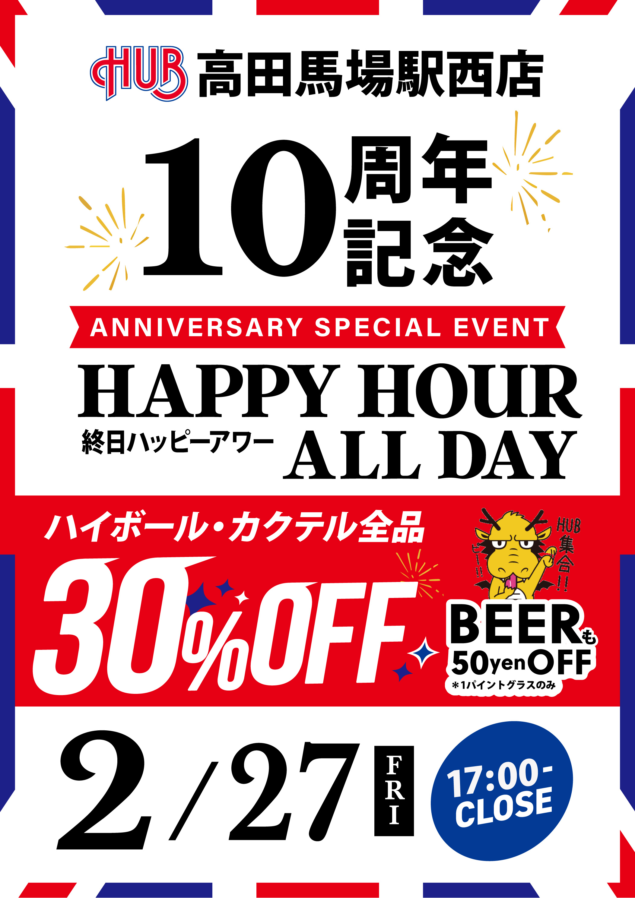 02/27(FRI)HUB高田馬場駅西店10周年特別企画