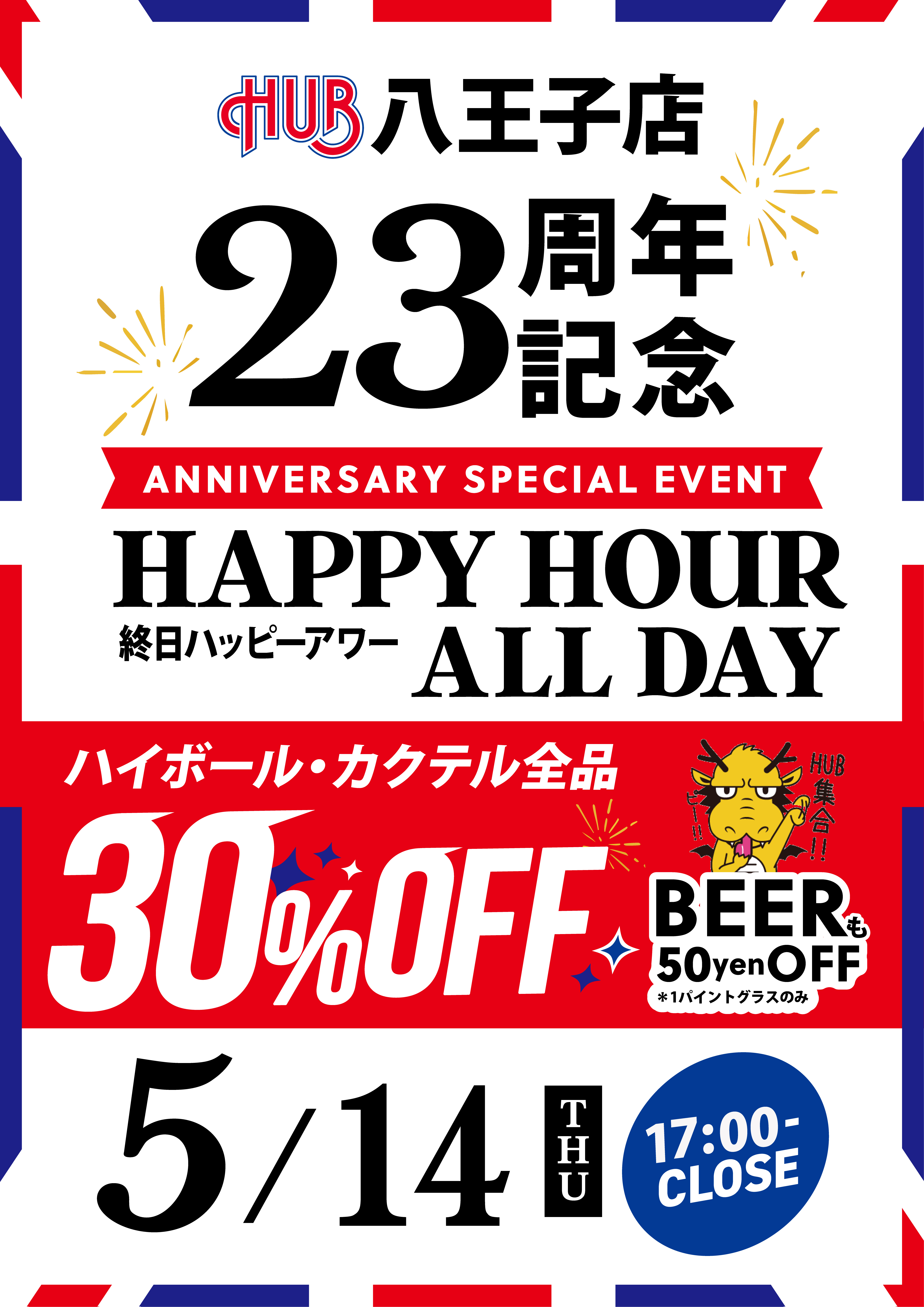 05/14(THU)HUB八王子店23周年特別企画