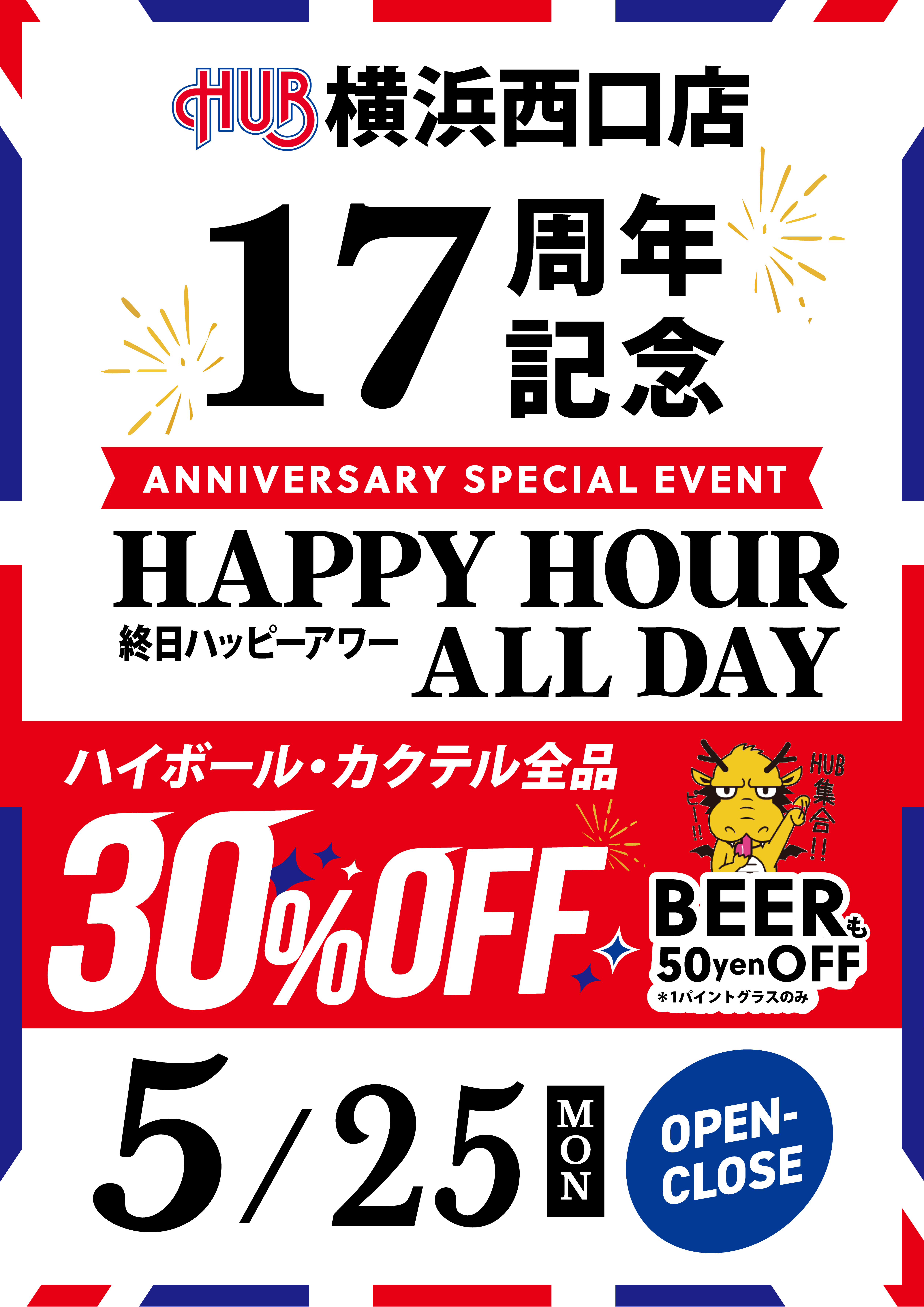 05/25(MON)HUB横浜西口店17周年特別企画