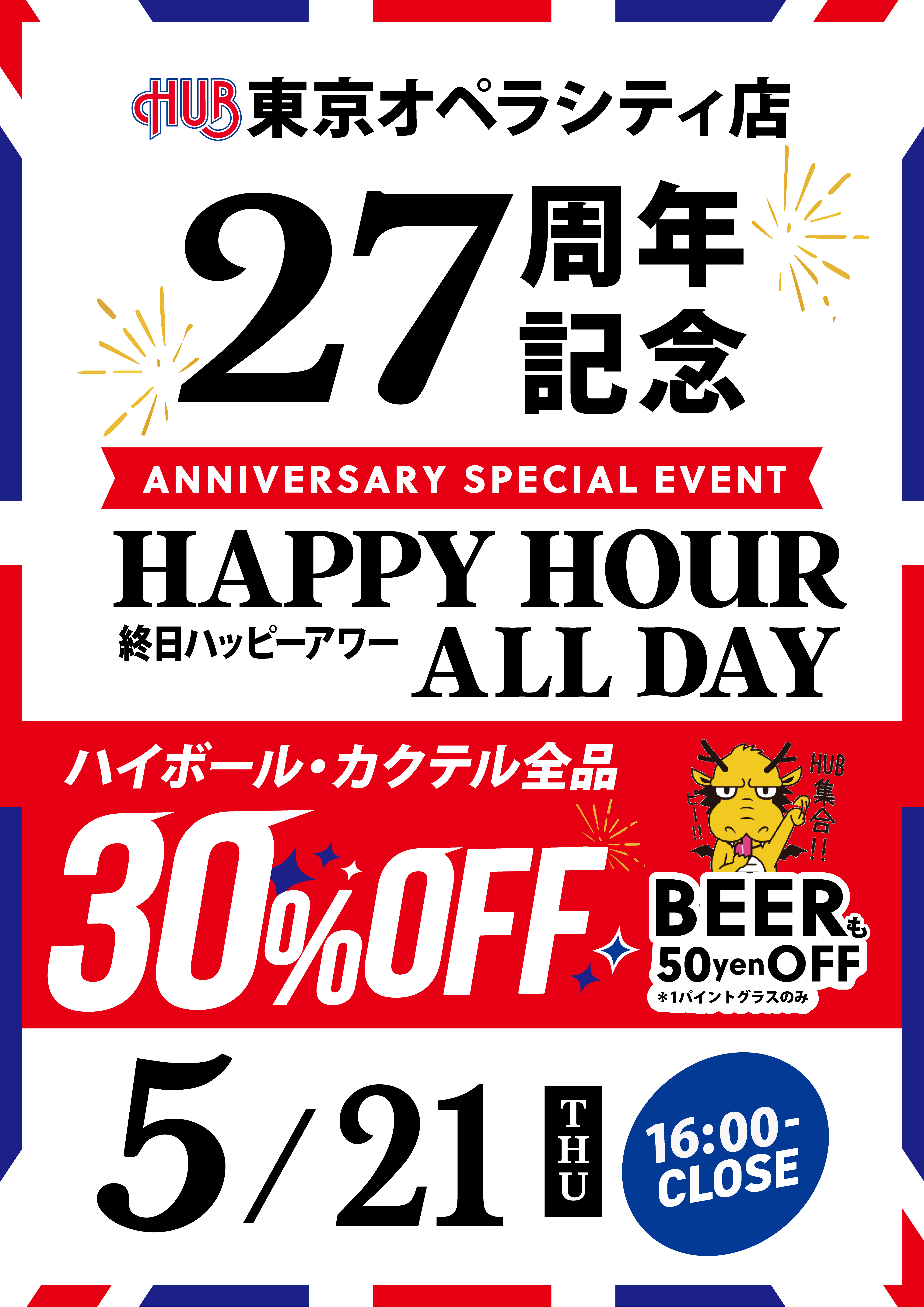 05/21(THU)HUB東京オペラシティ店27周年特別企画