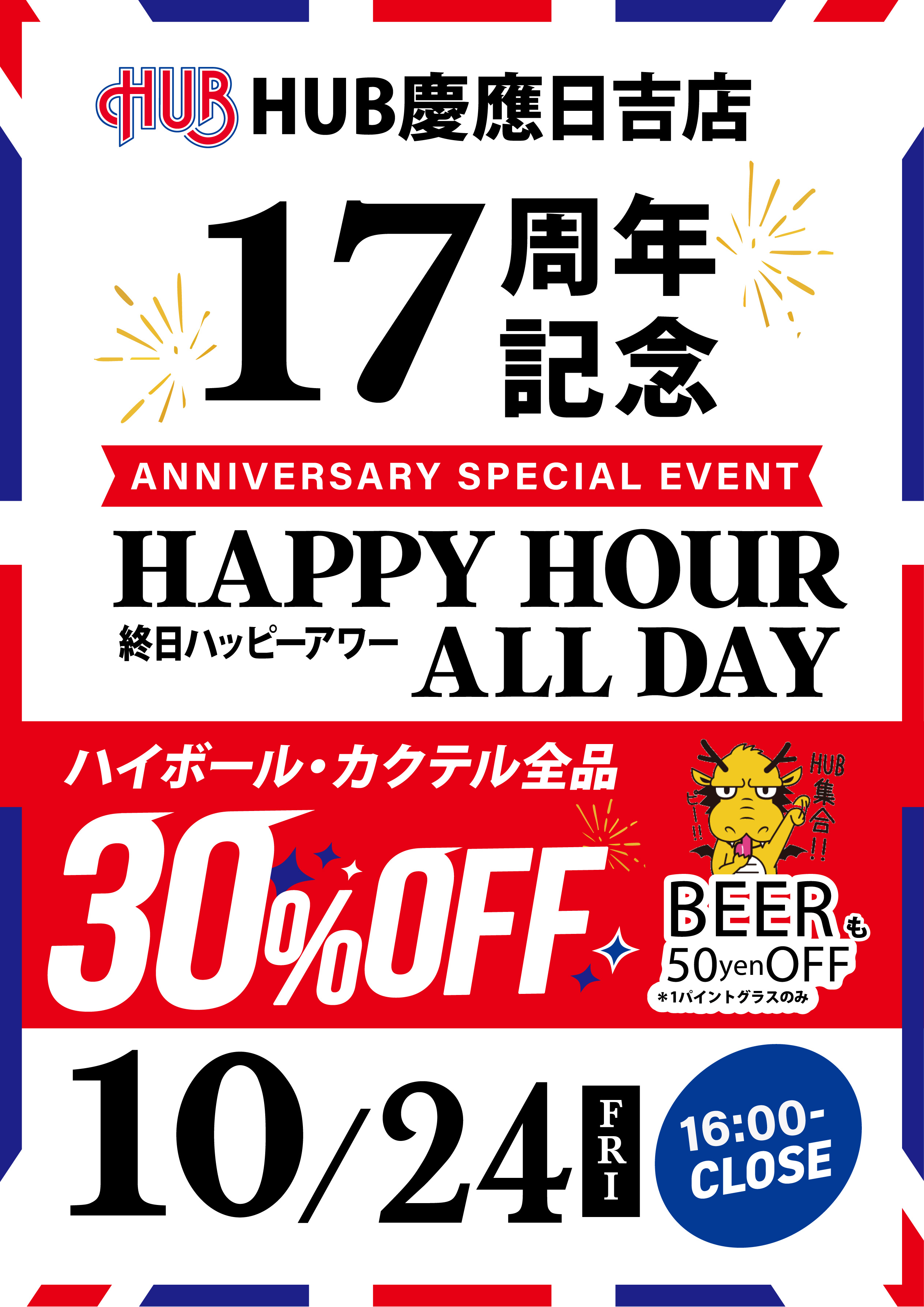 10/24(FRI)HUB慶應日吉店17周年特別企画