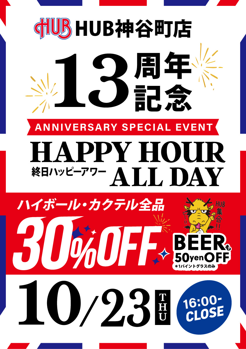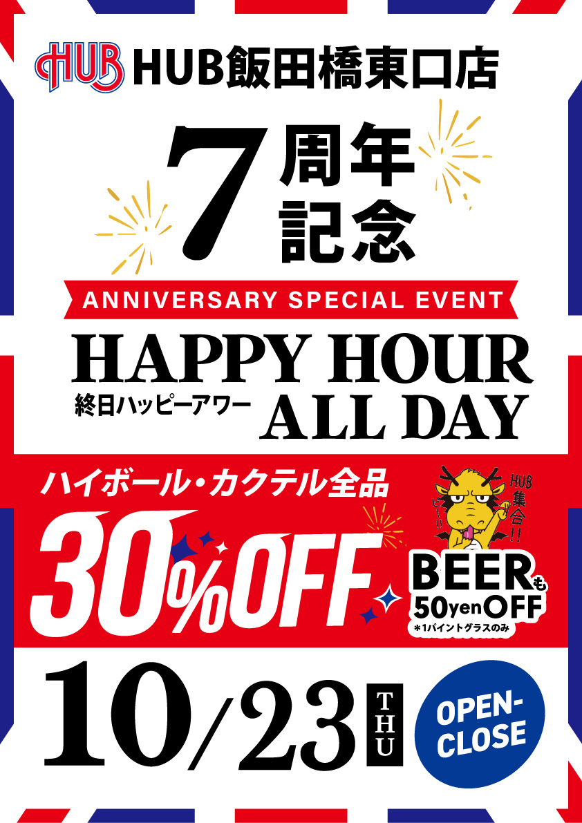 10/23(THU)HUB飯田橋東口店7周年特別企画