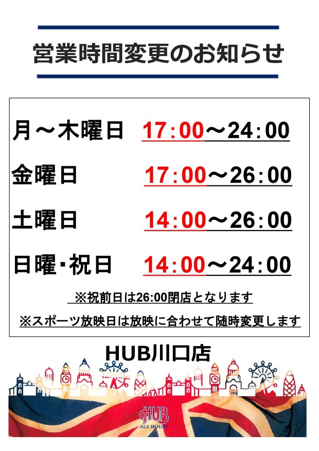 【営業時間変更のお知らせ】