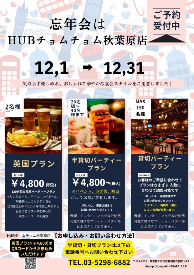 HUBチョムチョム秋葉原店から忘年会プランのお知らせ