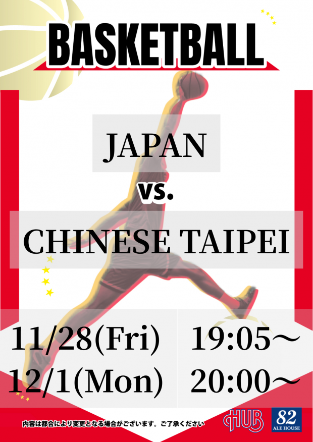 11/28(金)19:05 バスケットボール 日本 vs. チャイニーズ・タイペイ