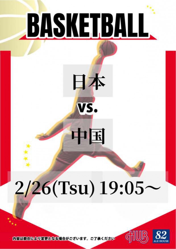 02/26(木)19:05 バスケットボール 日本 vs. 中国