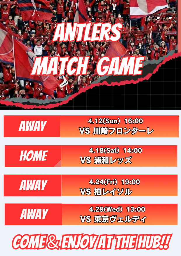 04/12(日)16:00 サッカー 川崎 vs. 鹿島