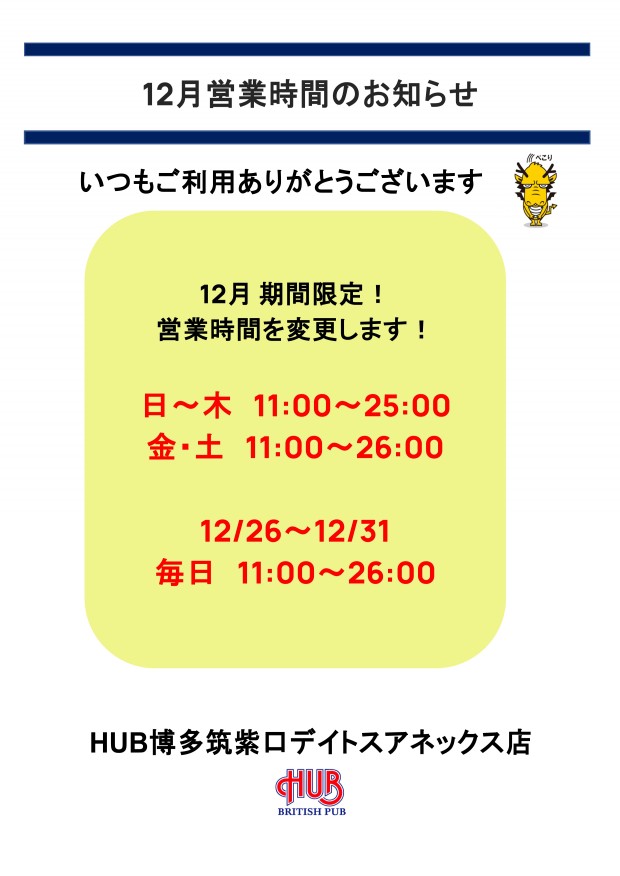 12月営業時間