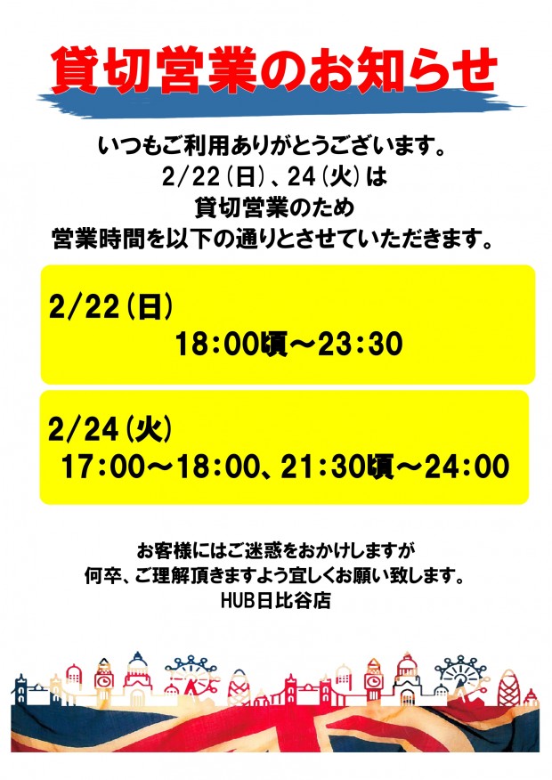 貸切営業のお知らせ