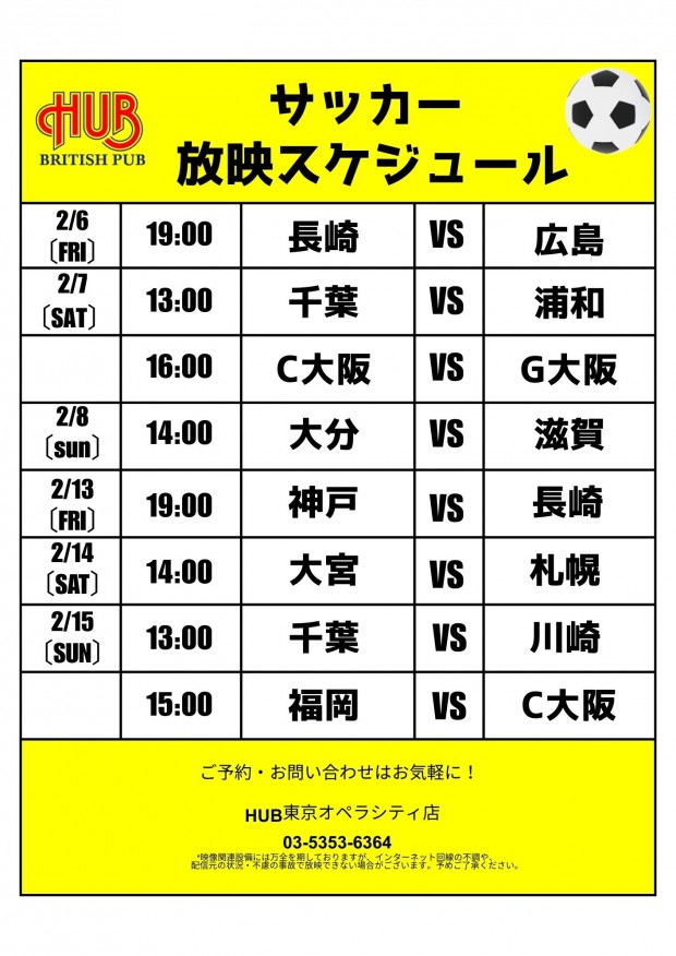 02/15(日)15:00 サッカー 福岡 vs. C大阪