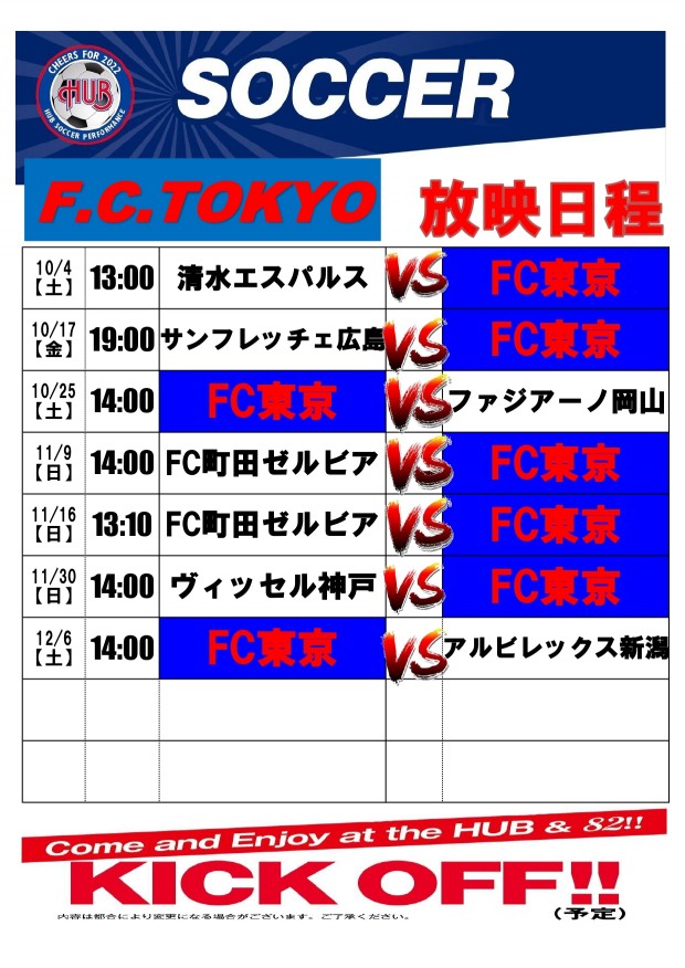 10/25(土)14:00 サッカー F東京 vs. 岡山