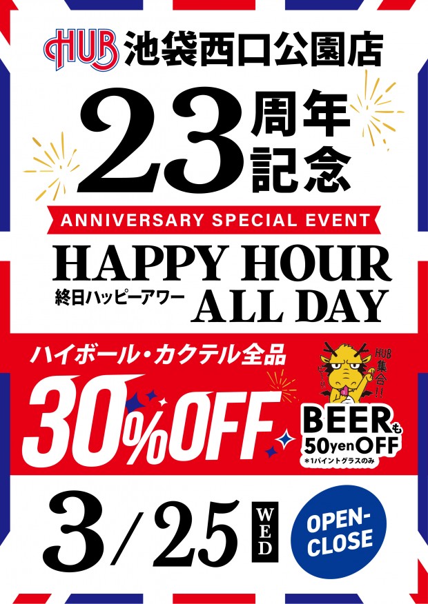 ★HUB池袋西口公園店23周年★