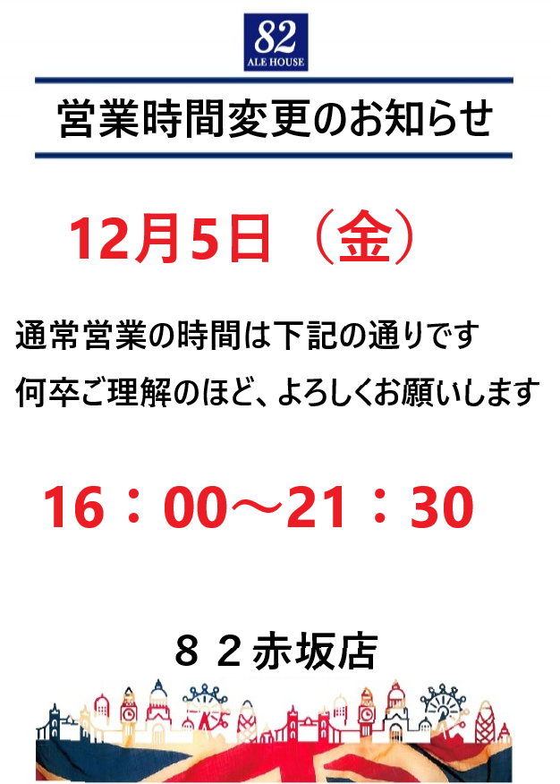 営業時間変更のお知らせ