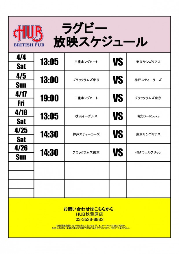 04/05(日)13:00 ラグビー リコーブラックラムズ東京 vs. コベルコ神戸スティーラーズ