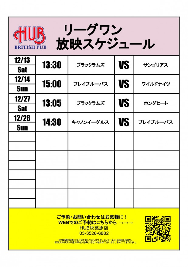 12/13(土)13:00 ラグビー リコーブラックラムズ東京 vs.東京サントリーサンゴリアス