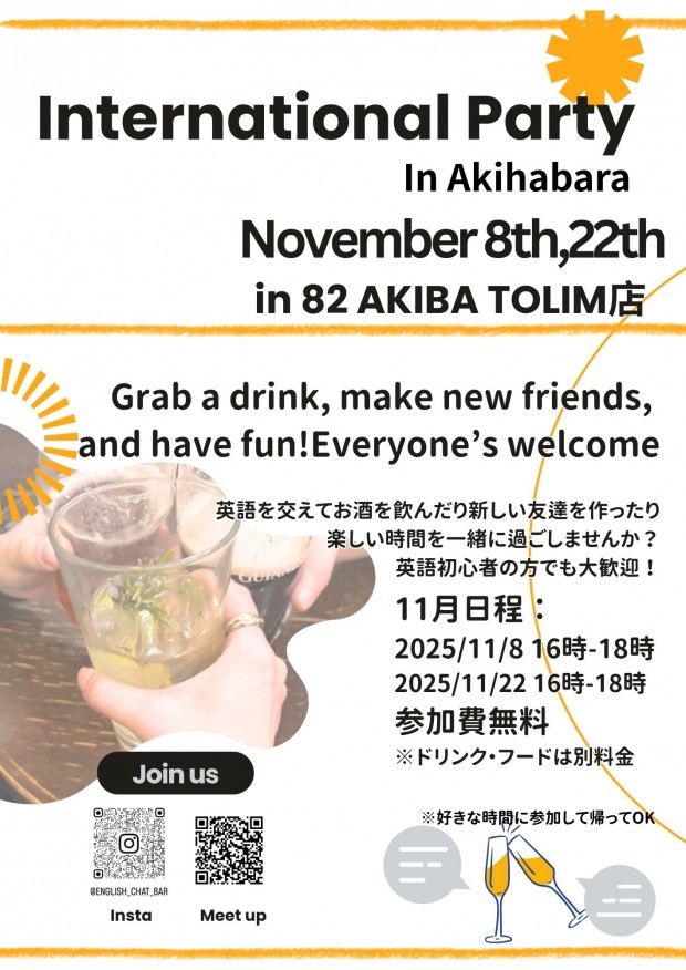 11月国際交流パーティー開催のお知らせ♪ イベント
