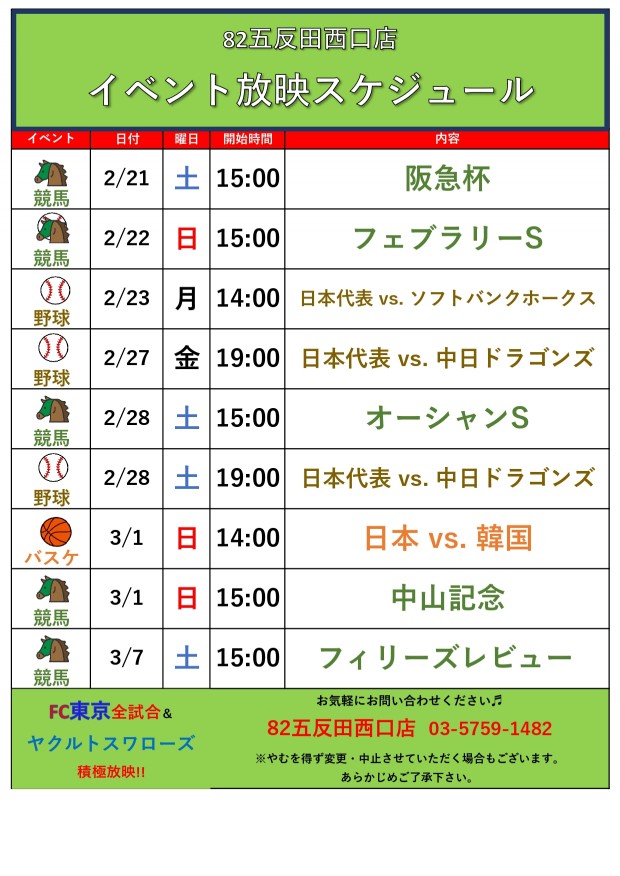 イベント放映のお知らせ