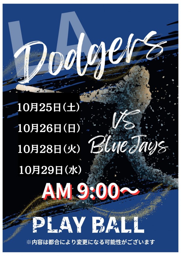 10/26(日)09:00 野球 ブルージェイズ vs. ドジャース