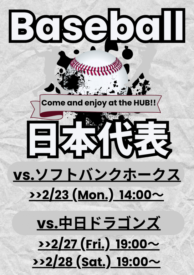 02/23(月)14:00 野球 日本代表 vs. ソフトバンクホークス