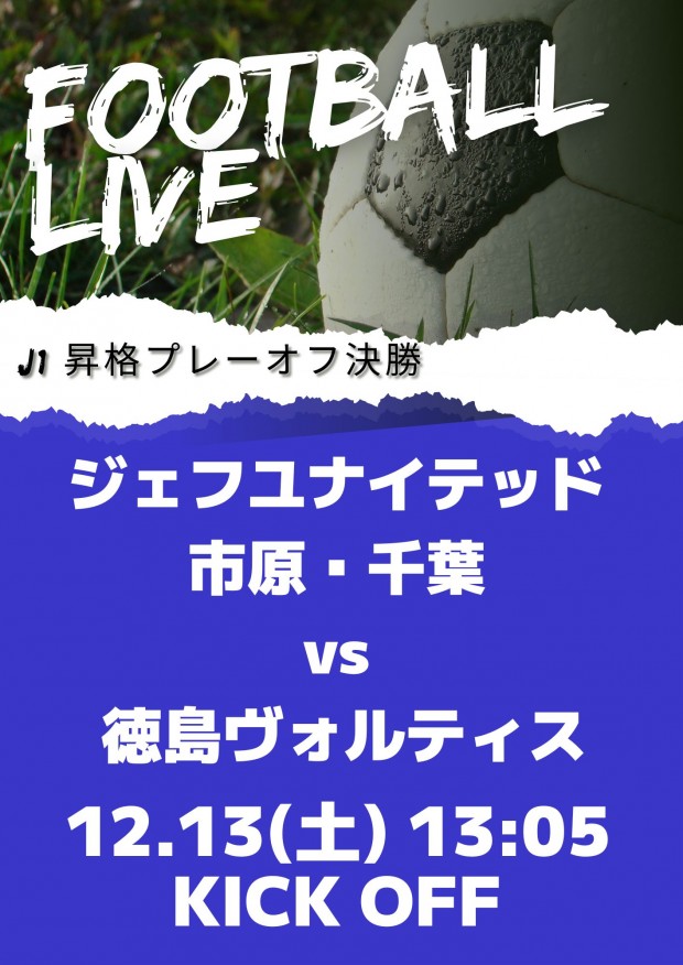 12/13(土)13:05 サッカー 昇格PO決勝 千葉 vs. 徳島