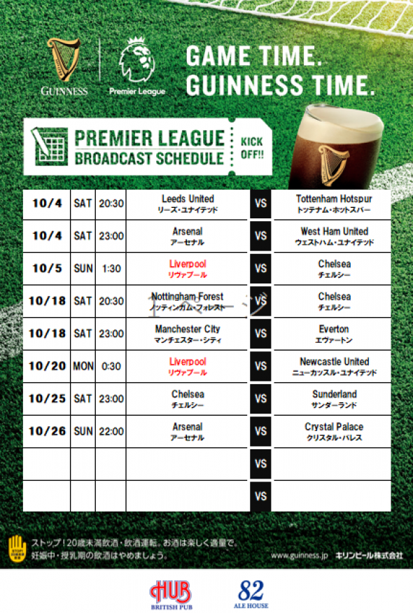 ★プレミアリーグ10月放映スケジュール★