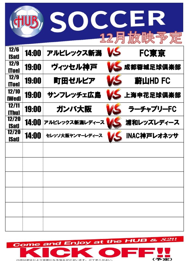 12/06(土)14:00 サッカー F東京 vs. 新潟