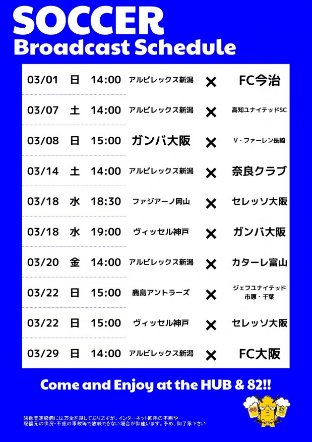 3月サッカー放映スケジュール!!