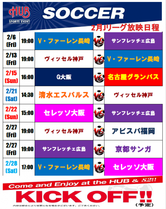 02/13(金)19:00 サッカー 神戸 vs. 長崎