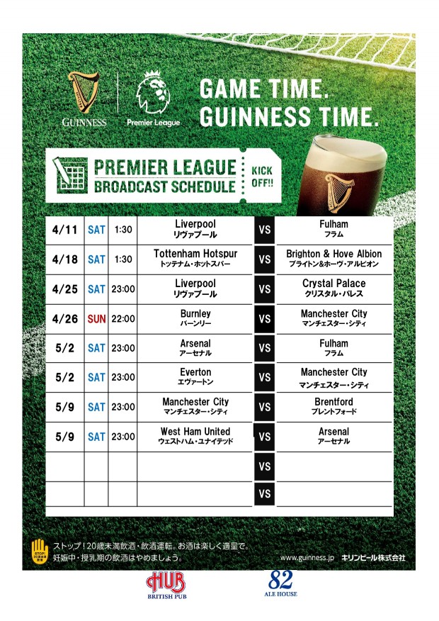 04/19(日)01:30 サッカー トッテナム・ホットスパー vs. ブライトン&ホーヴ・アルビオン