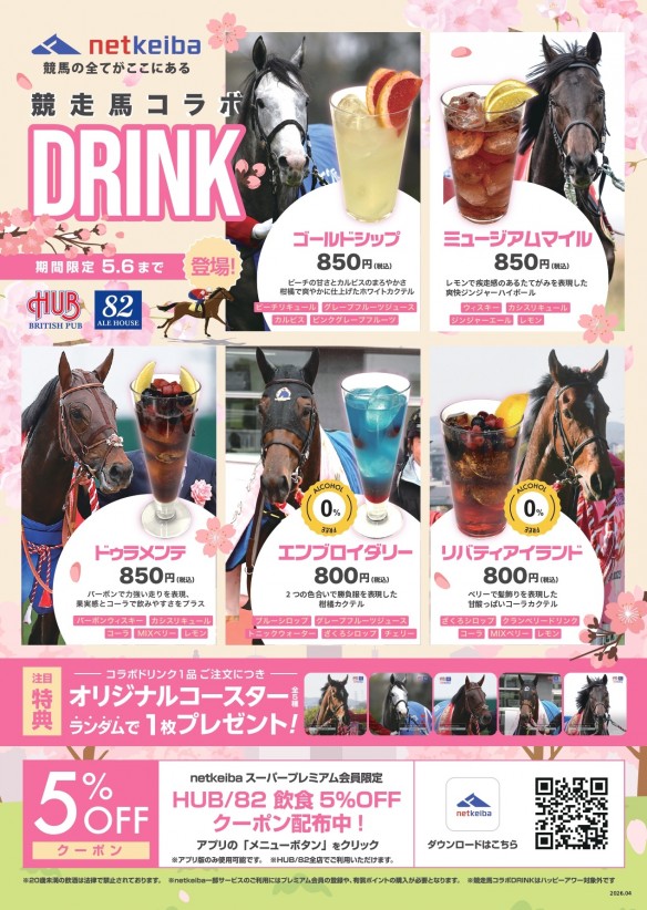 人気競走馬をイメージした限定ドリンク全5種が登場!