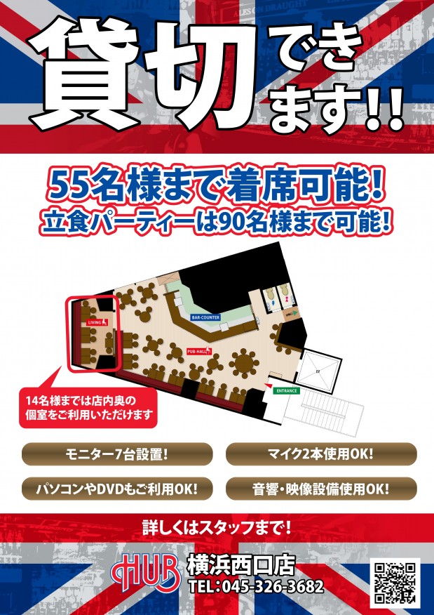 貸切パーティーや半貸切のご相談は下記又はお電話からお願い致します。