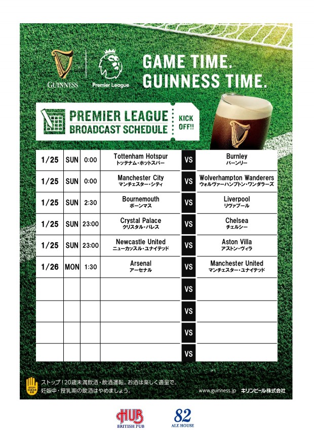 1月のプレミアリーグ放映スケジュールが