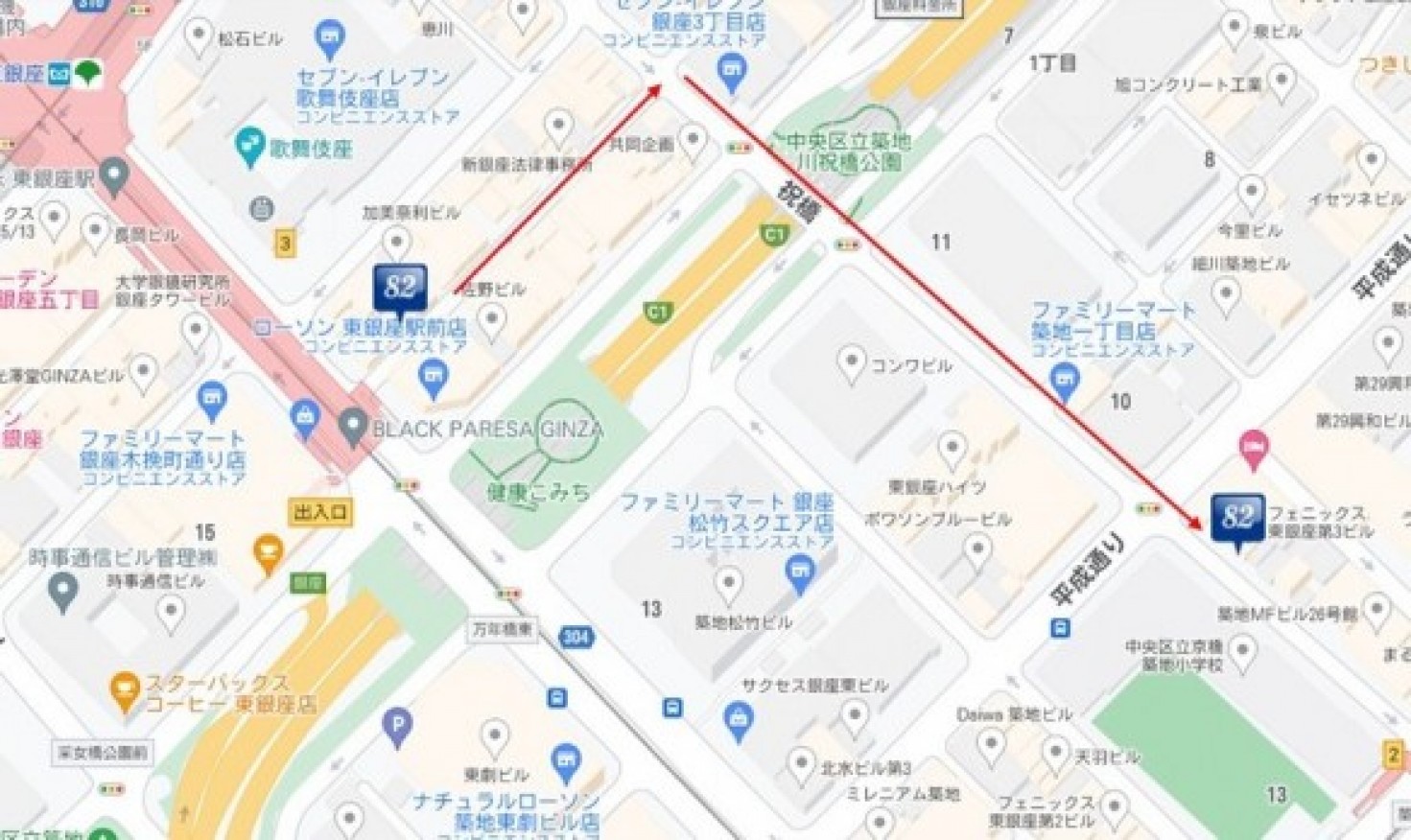 お近くに82築地店もございます。