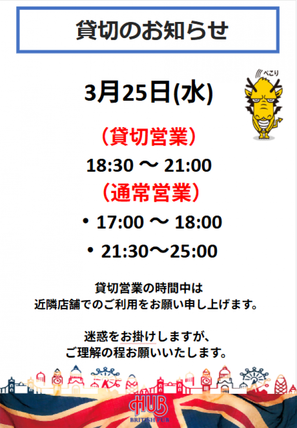 貸切実施の為