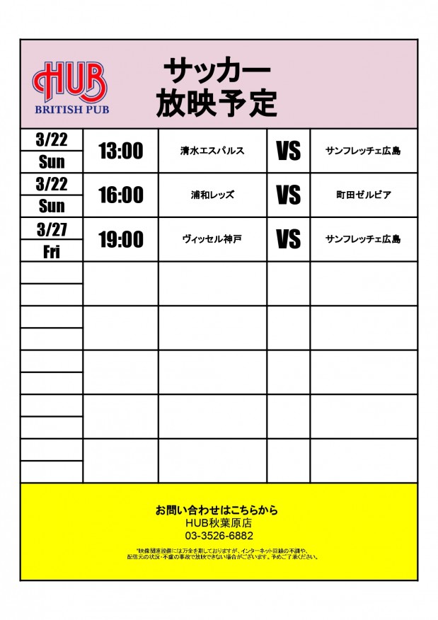 3月のサッカーの放映スケジュールです!