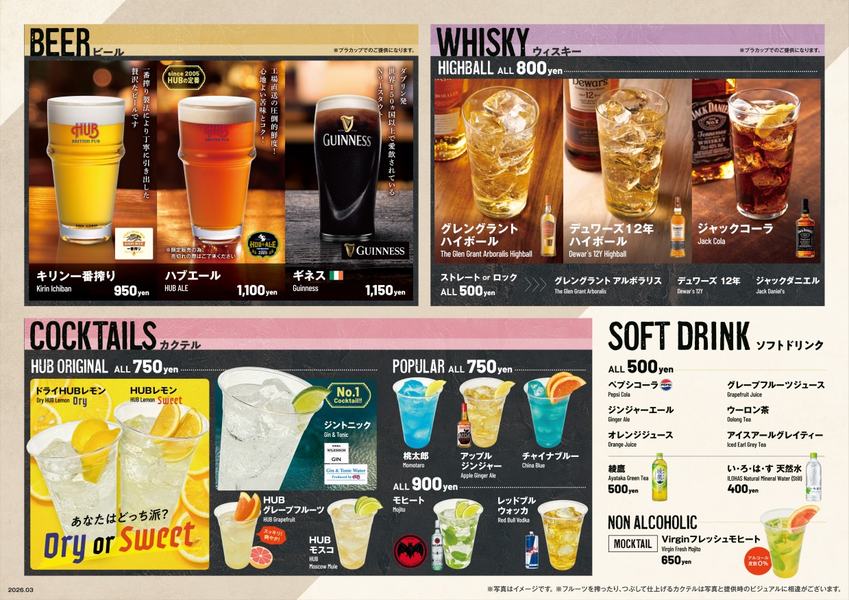 定番のフィッシュ&チップスや人気メニューとともに、豊富なドリンクをお楽しみいただけます。