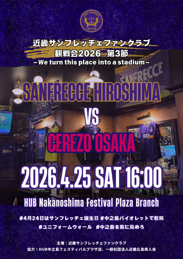 上記日程で、サンフレッチェ広島戦を放映いたします!!