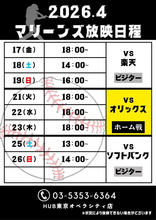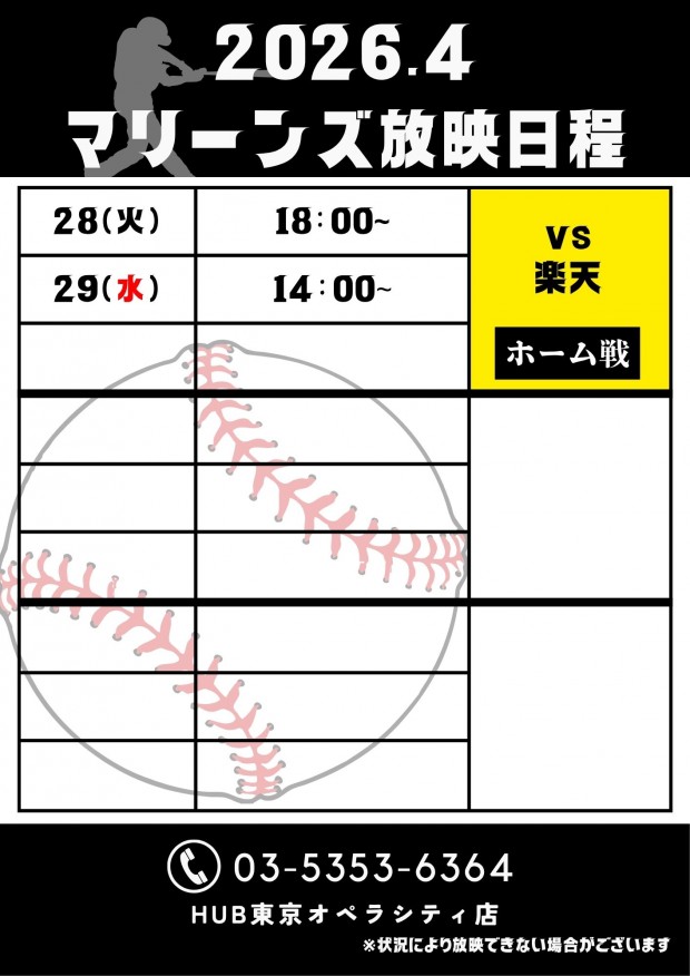 4月の千葉ロッテマリーンズ放映日程のお知らせです!